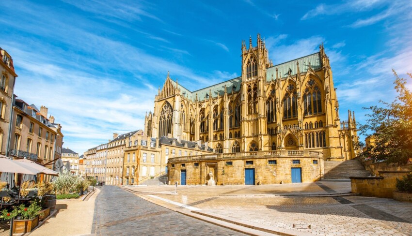 Entre Seille et Moselle, de places en ruelles, l’architecture défie souvent le temps grâce à ses monuments, comme la cathédrale Saint-Étienne, l’une des plus belles de France.