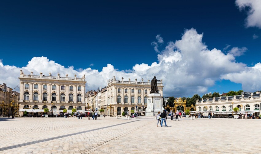 Construite par Emmanuel Héré, la place est entourée de grilles finement ouvragées, rehaussées d’or et réalisées par le forgeron Jean Lamour, ainsi que de deux majestueuses fontaines conçues par Barthélémy Guibal. Depuis 1831, la statue de Stanislas Leszczynski, ancien roi de Pologne devenu duc de Lorraine, trône au centre de la place qui porte son nom. L’hôtel de ville, l’opéra et le musée des beaux-arts comptent parmi les principaux bâtiments de style classique de la place.