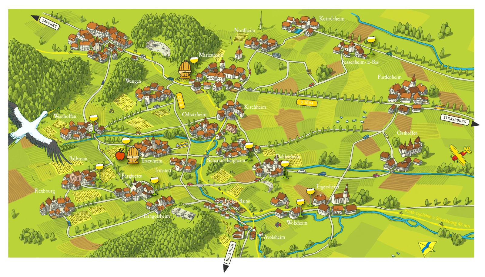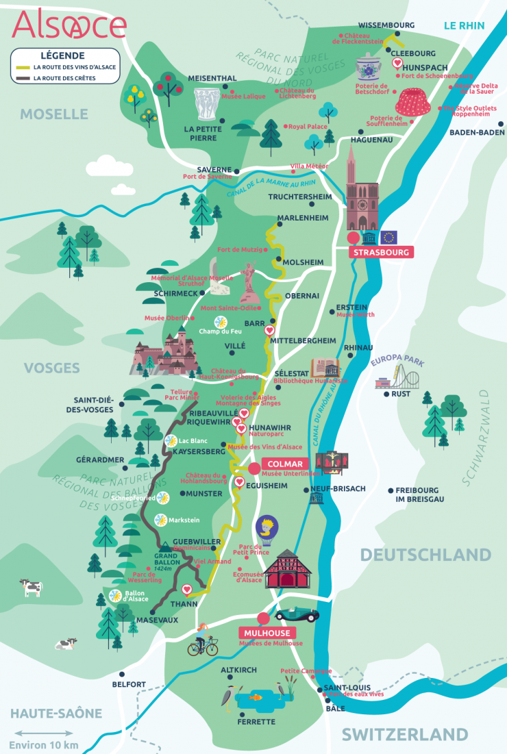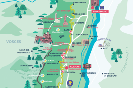 Si vous décidez d’imprimer la carte chez vous, vous trouverez ci-dessous une carte de l’Alsace avec les principaux axes routiers de la région et une carte simplifiée des principaux sites touristiques pour vous aider à vous repérer lors de la préparation de votre voyage. Cliquez sur chaque image pour l’agrandir et télécharger sa version en haute résolution.