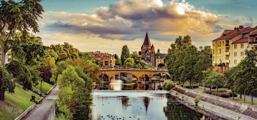 La ville de Metz est située dans le nord-est de la France et a une histoire vieille de 2000 ans. Son architecture aux influences françaises et allemandes remonte à l’antiquité : vous pourrez faire un voyage dans le temps entre le quartier impérial, classé au patrimoine mondial de l’UNESCO, les rues médiévales et l’imposant Centre Pompidou-Metz, véritable diamant de l’art contemporain français, qui développe chaque année une programmation originale et d’envergure.