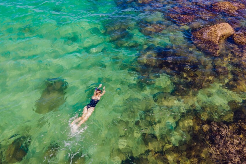 Bien que l’eau puisse être un peu agitée, une petite piscine naturelle entourée de rochers permet aux plus petits de barboter en toute sécurité.
