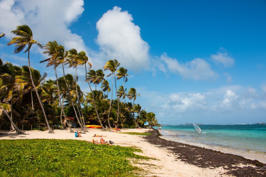 Avec son sable blond de près de 2 km de long, ses hauts cocotiers inclinés et ses eaux calmes et turquoises, cette plage est d’une beauté à couper le souffle. De plus, elle est fréquentée aussi bien par les Martiniquais que par les touristes. Les week-ends, elle est très fréquentée, mais sa forme en arc de cercle permet de trouver un coin tranquille même le jour le plus chargé.
