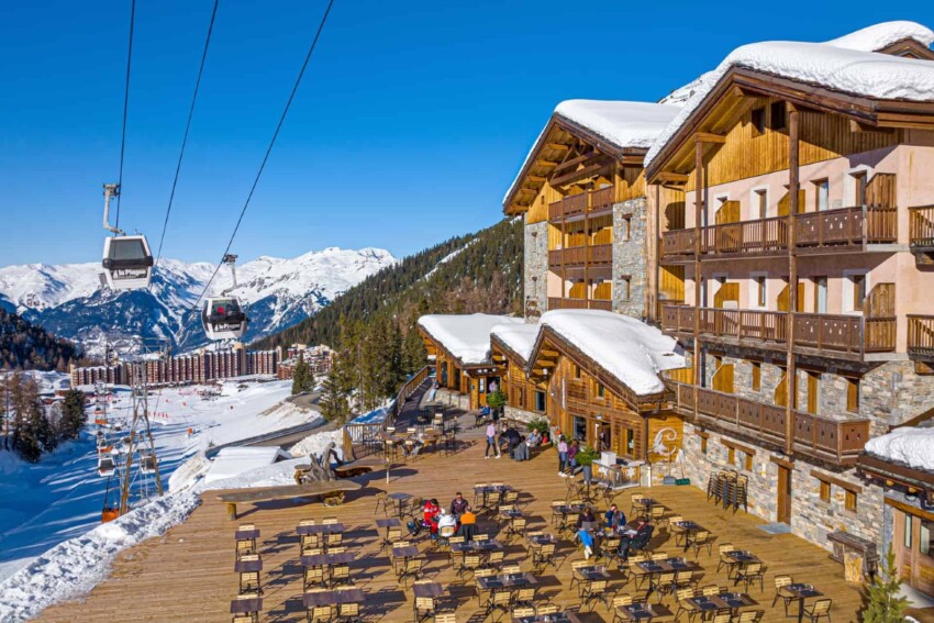 La meilleure caractéristique d’Aime La Plagne, outre sa situation en bord de piste, est son altitude. Le village offre une vue imprenable sur la vallée, les montagnes environnantes et le Mont Blanc, ce qui lui confère également l’avantage d’une excellente exposition au soleil. N’étant pas à l’ombre des montagnes, la lumière reste beaucoup plus longtemps que dans la station voisine de Plagne Centre, ce qui est idéal pour prendre un verre après le ski sur le balcon.