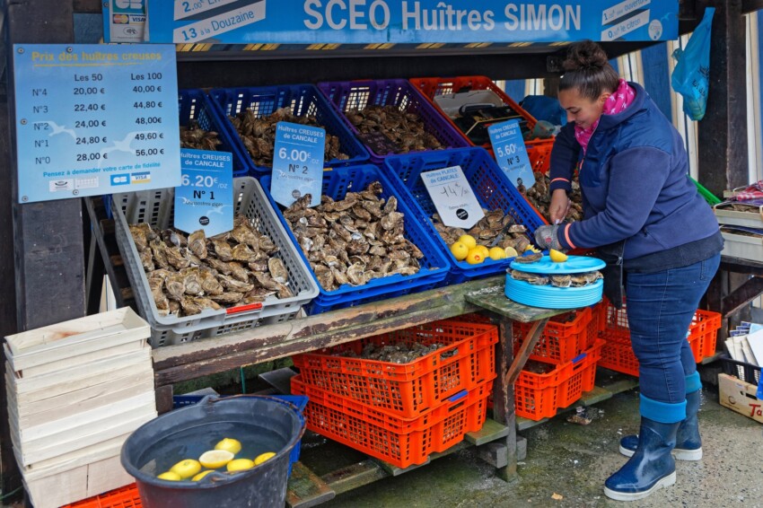 Vous pouvez les acheter, en choisissant la taille et la quantité, directement sur place : il y a les huîtres creuses, plus petites et moins chères, ou les cancalaises, chères, grosses, charnues et réputées. Pour rendre l’expérience encore plus enrichissante, accompagnez votre assiette d’huîtres d’un verre de vin blanc. Une fois la dégustation terminée, faites comme tous les locaux : jetez les coquillages sur la plage. C’est ce qui explique la présence de nombreuses huîtres vides sur le littoral.