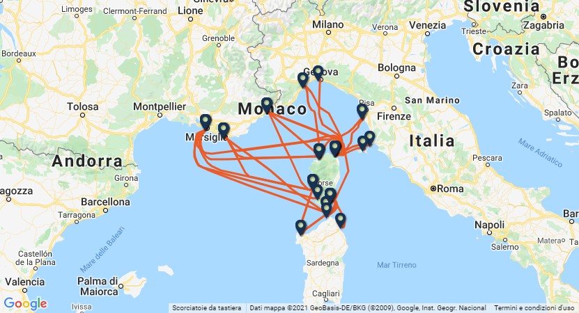 Depuis la France, les ferries partent des ports de Toulon, Nice et Marseille et les escales sont Ajaccio, Bastia, Ile Rousse, Porto Vecchio et Propriano.