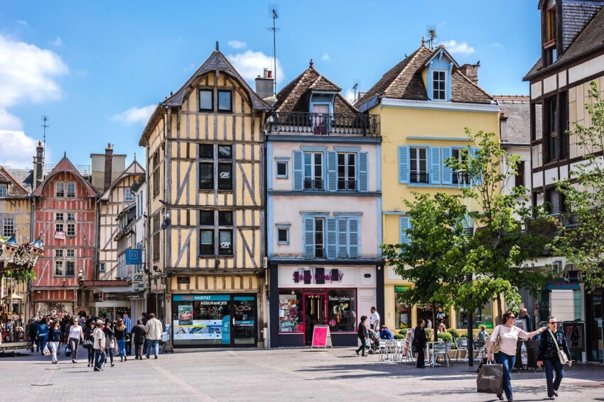 Troyes abrite l’un des plus beaux et des plus riches ensembles de maisons à colombages, datant du Moyen Âge et de la Renaissance, et constituant un patrimoine unique et précieux. Elles se caractérisent par leur structure en bois apparente, qui forme un motif zébré, souvent peinte de couleurs vives, ce qui leur confère un charme pittoresque et unique.