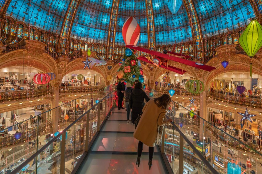 Il y a quelques années, les Galeries Lafayette ont installé une passerelle de 9 mètres de long, suspendue à 16 mètres au-dessus du vide de l’espace central du grand magasin.