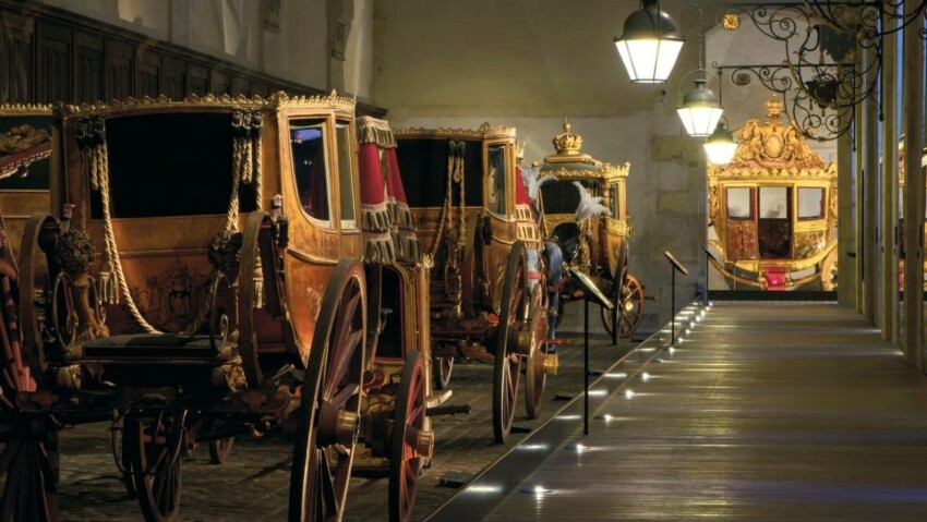 La galerie des carrosses est la plus grande exposition jamais réalisée pour accueillir tous les types de véhicules royaux: carrosses majestueux ou petites voitures pour les enfants de Marie-Antoinette, chaises à porteurs ou traîneaux, représentant un témoignage exceptionnel de la vie et du faste de la cour sous l’Ancien Régime, l’Empire et la Restauration.