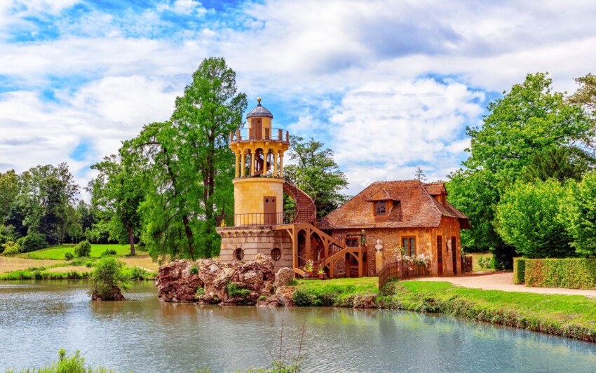 Le Hameau de la Reine, construit entre 1783 et 1786 par Richard Mique, architecte de la Reine, illustre le goût de l’époque pour le charme de la vie à la campagne. Inspiré de l’architecture rurale traditionnelle et aménagé de manière à reproduire les tableaux de l’époque, ce petit village comprenait plusieurs maisons construites à la fois pour de simples divertissements (billard, repas intimes, loisirs) et avec une véritable fonction agricole, abritant laiteries et fermes.