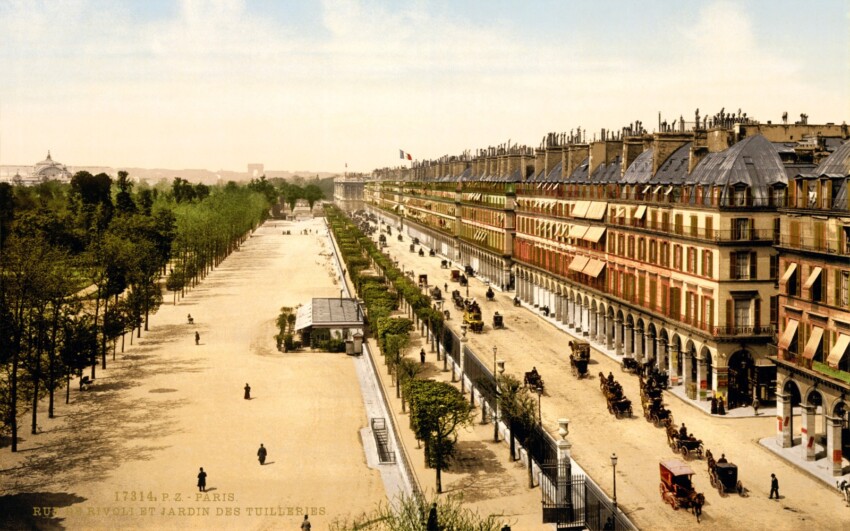 La rue de Rivoli est l’une des rues les plus célèbres de Paris. Elle relie la place de la Concorde à la place de la Bastille et compte pas moins de trois kilomètres d’arcades. Elle a été conçue et construite par Napoléon pour créer une artère à travers le centre de la ville, flanquant à la fois le Louvre et le jardin des Tuileries.