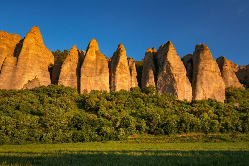 Le village des Mées est célèbre pour ses rochers hauts et étroits qui s’élèvent fièrement à plus de 100 mètres au-dessus de la ville et surplombent la vallée de la Durance.